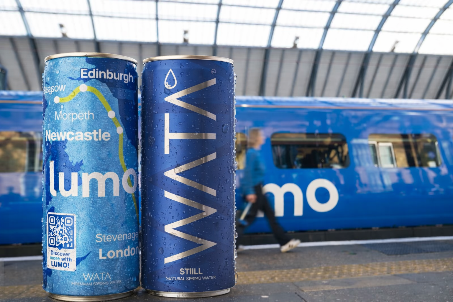As part of the partnership, Lumo will introduce 330ml still and sparkling WATA cans across its services, connecting Glasgow, Edinburgh, Newcastle and London. The exclusive Lumo edition design features the train route across the can, creating a unique travel-led product experience.